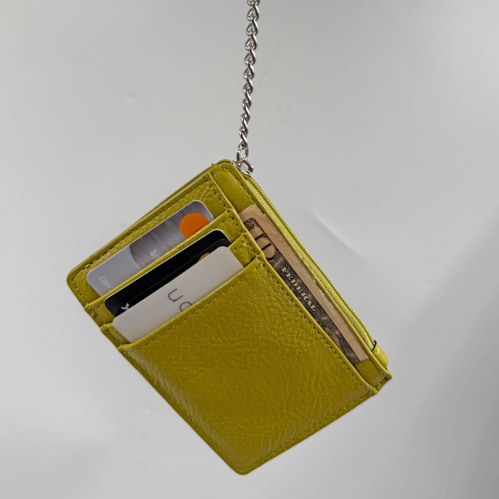 This accessory is cute and compact – a perfect wallet to attach to a bag, keys, belt loop, and more! Comes with 3 card holders, a clear ID compartment, bill compartment and even a zipper pocket to hold your change!